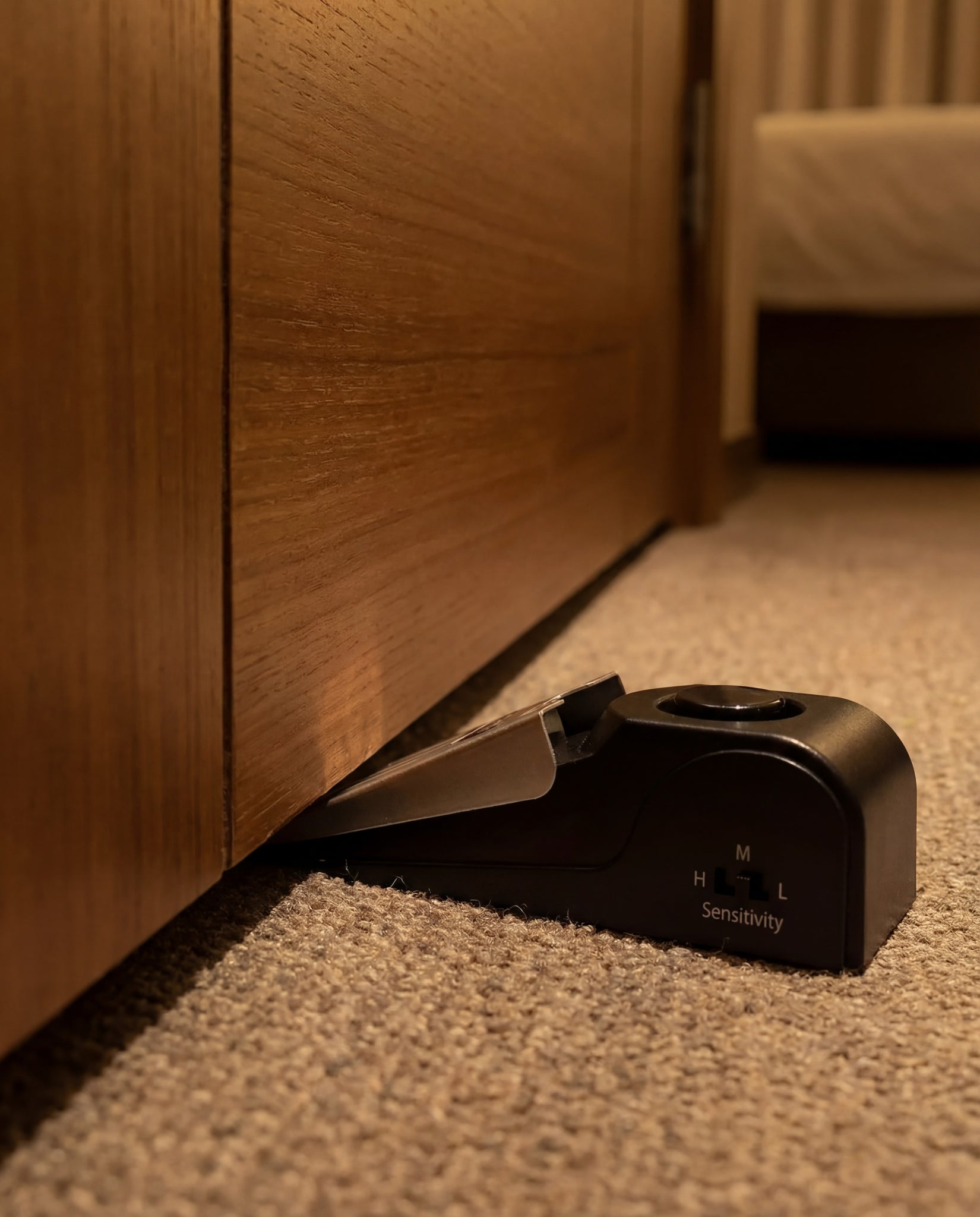 Meet the DoorGuard Pro, the compact security solution that turns any door into a fortress. Whether you're traveling solo, staying in a hotel, or simply want extra protection at home, this clever wedge-style door stopper does double duty that physically blocking your door and blasting a 120dB alarm the moment someone tries to force their way in.